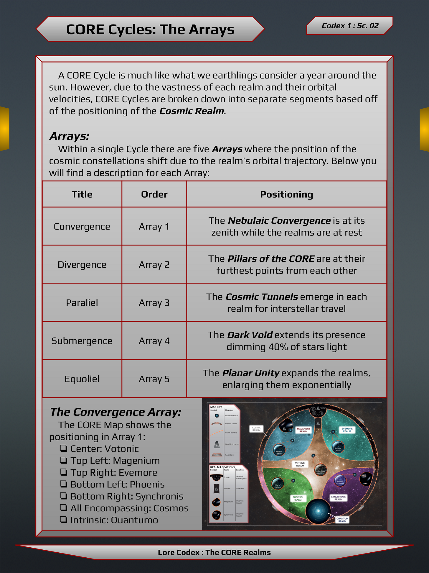 This brought about the Age of Convergence that is now referred to as the first Array in a CORE Cycle, with the Array calendar being named after Illumin, the Agerosh Illumin.